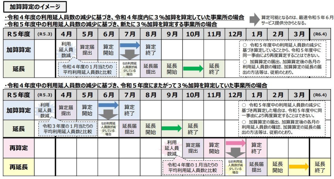 令和4年度中の利用者数の減少で4月5月に3%加算を算定され、令和5年度も利用者数の現象した場合は、算定ができます。
