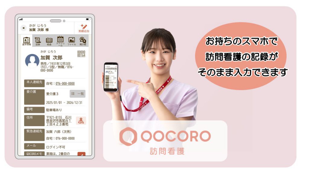 『QOCORO訪問看護』なら、今お使いのスマホがそのまま記録業務に使えます!