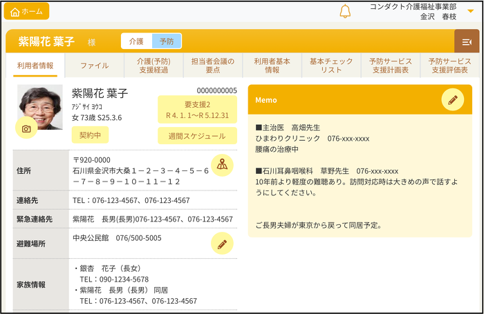 ・メモ機能で、利用者ごとに申し送りや関係機関情報を共有できます。