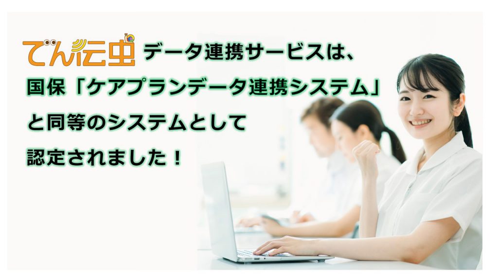 このたび、弊社が提供する「でん伝虫」データ連携サービスが、国保連が定める『ケアプランデータ連携システム』と同等のシステムとして正式に認められましたことをご報告いたします。
